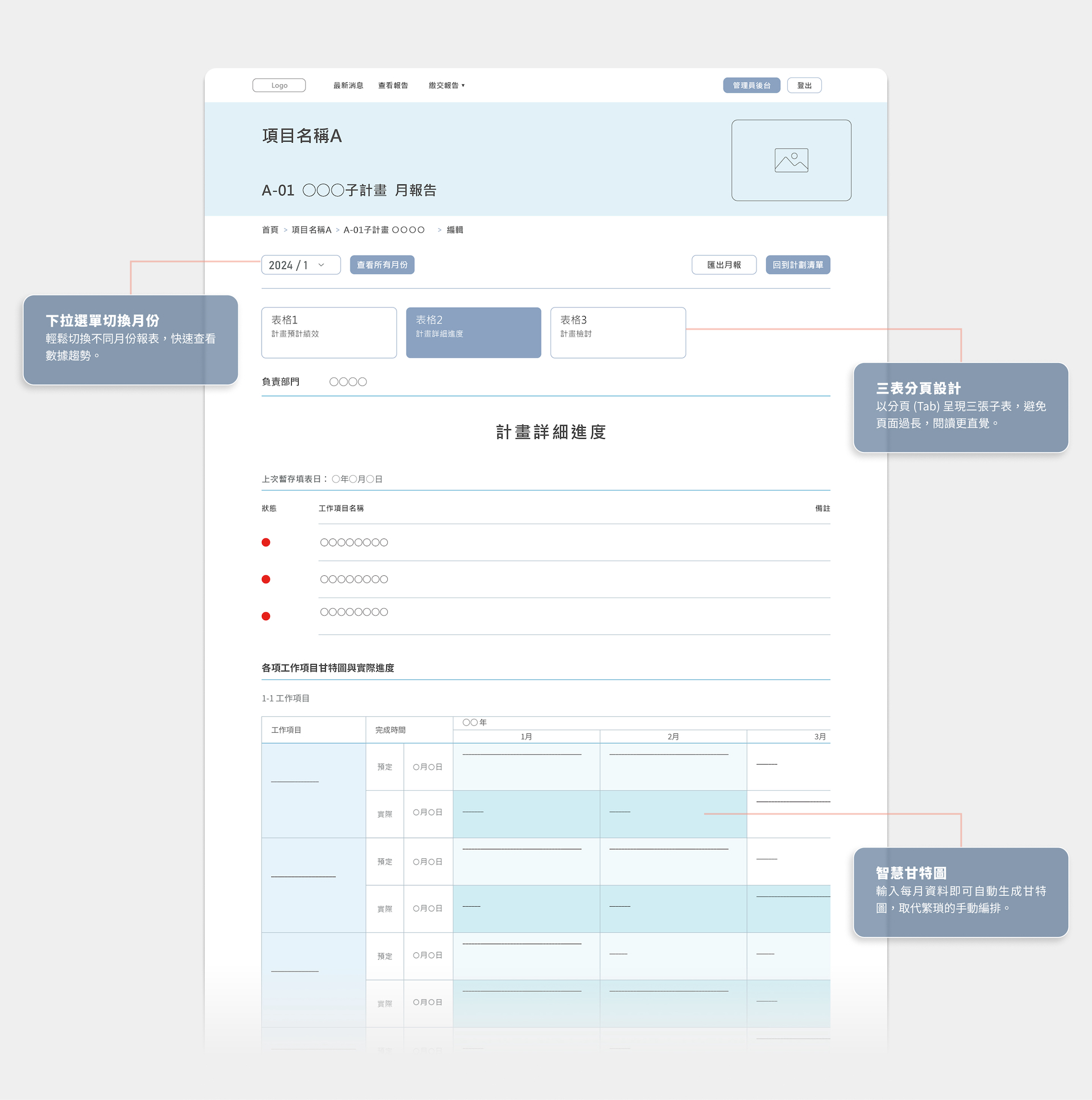 - Progress dashboard: managers can update and track project status in real time.