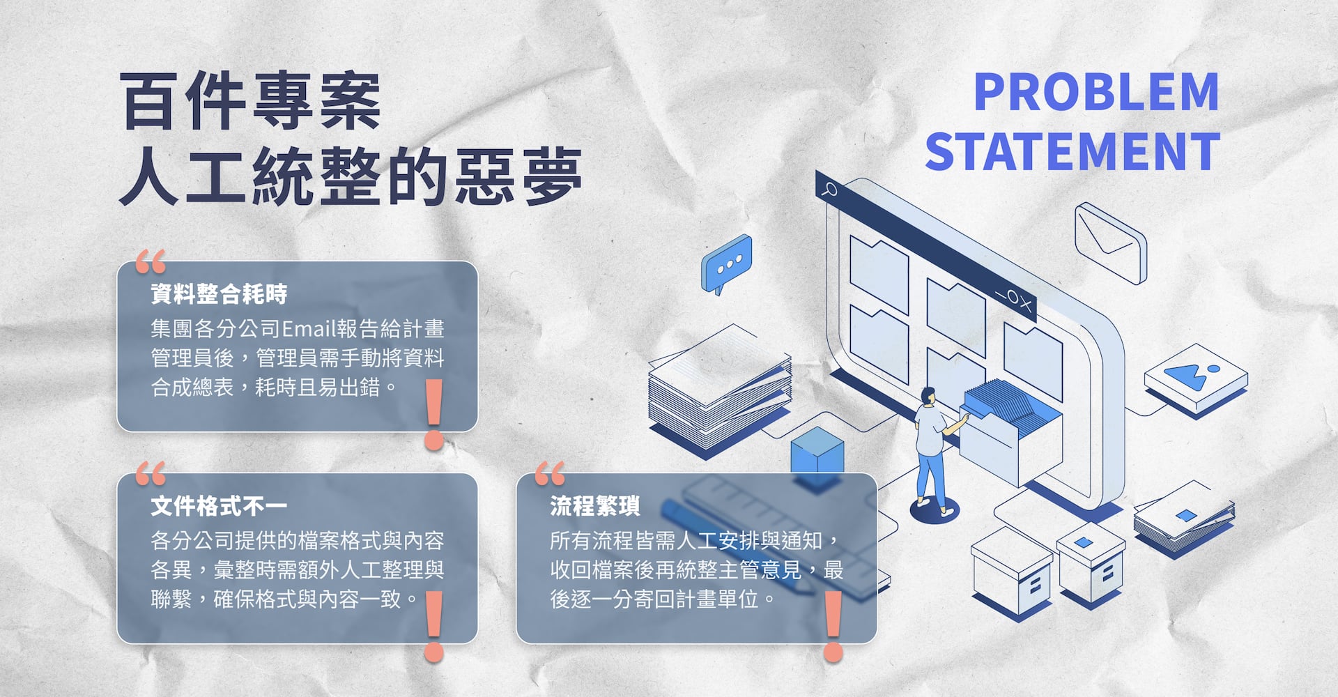 Our client is a large corporate group with multiple divisions. For years they struggled with a time-consuming reporting process: every month, project teams emailed reports to a central coordinator who combined everything by hand. Different file formats from each department meant extra work to standardize. Sending reminders, collecting manager feedback, and redistributing the final reports all added even more steps—and more chances for errors.