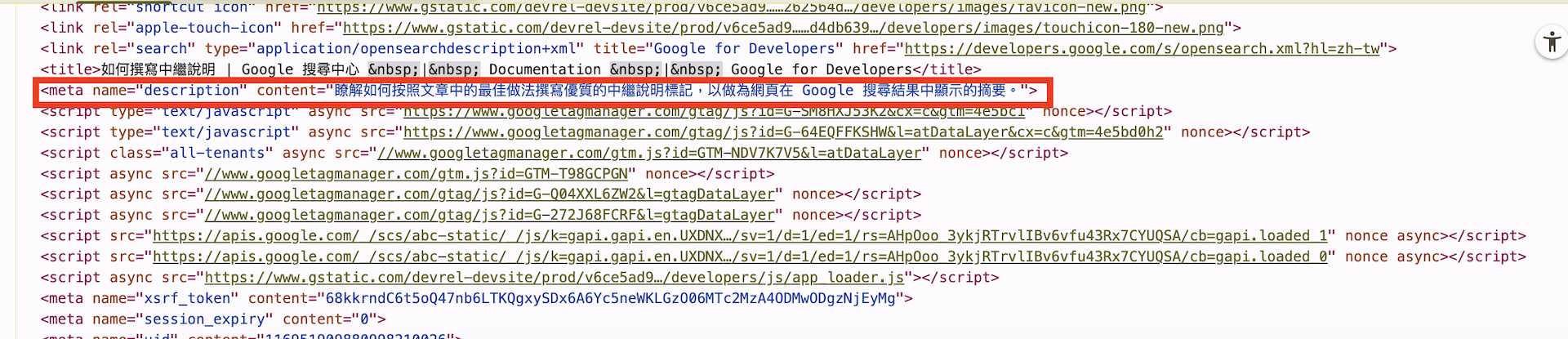 Meta description 是放在網站 <head> 裡的一段文字,用來簡短說明該頁的內容。雖然它不直接影響 Google 的排名,但會影響使用者是否點擊,進而間接影響流量品質。Google 通常會使用網站設定的 meta description,但若覺得內容與搜尋意圖不符,就會自動從頁面中擷取文字生成摘要。